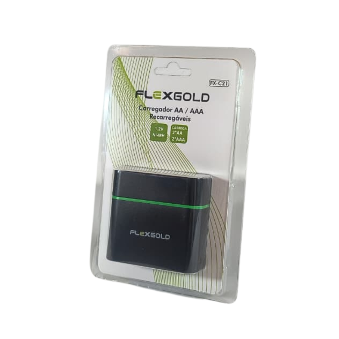 O carregador Flexgold FX-C21 foi desenvolvido para recarregar pilhas recarregáveis dos tipos AA e AAA de forma rápida, segura e eficiente. Compatível com pilhas Ni-MH (Níquel-Metal Hidreto) de 1.2V, o modelo conta com 4 canais de carga independentes, permitindo o carregamento simultâneo de diferentes combinações: de 1 a 2 pilhas AA e/ou 1 a 2 pilhas AAA.