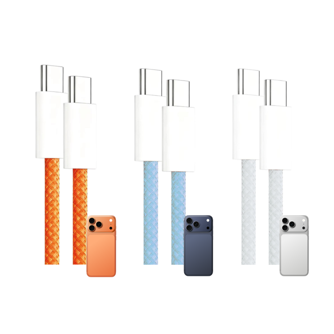 Cabo USB-C para USB-C desenvolvido para carregamento e transferência de dados com alta eficiência e durabilidade. Possui revestimento externo trançado em nylon, oferecendo maior resistência contra dobras, torções e desgaste no uso diário.